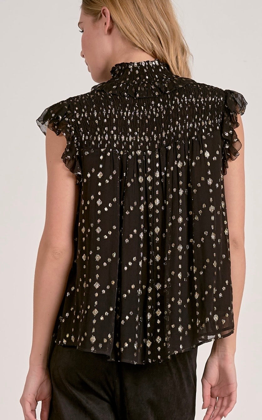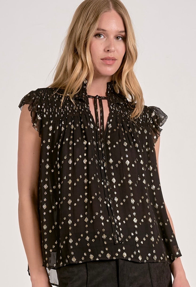 Elan Black Geo Print top