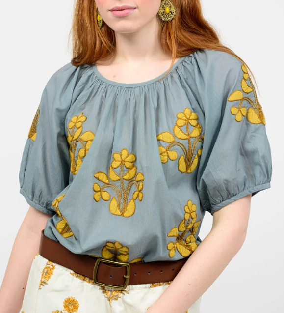 Ivy Jane Applique Peasant Grey Top